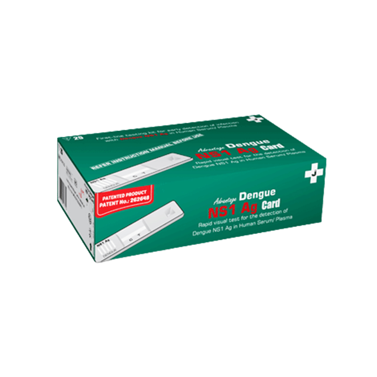 The Dengue Duo kit is a rapid, in-vitro immunochromatographic assay designed to detect both dengue virus NS1 antigen and IgG/IgM antibodies against dengue virus in human serum, plasma or whole blood. Dengue Duo rapid test contains two test devices (left side; Dengue NS1 Ag test, right side; Dengue IgG/IgM test).